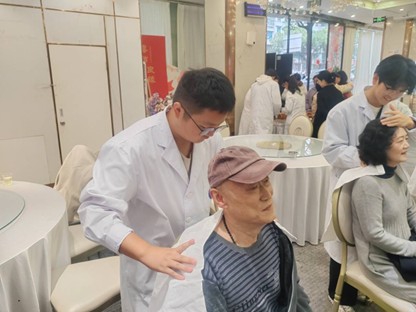 表演结束后,志愿者们迅速转换角色,化身为专业的推拿按摩师,为老教师们提供一对一的推拿按摩服务。他们运用所学的专业知识,结合老教师的身体状况,精心施术,手法娴熟,有效缓解了老教师们的肩颈腰腿疼痛,让老教师们感受到了来自年轻一代的温暖与关怀。