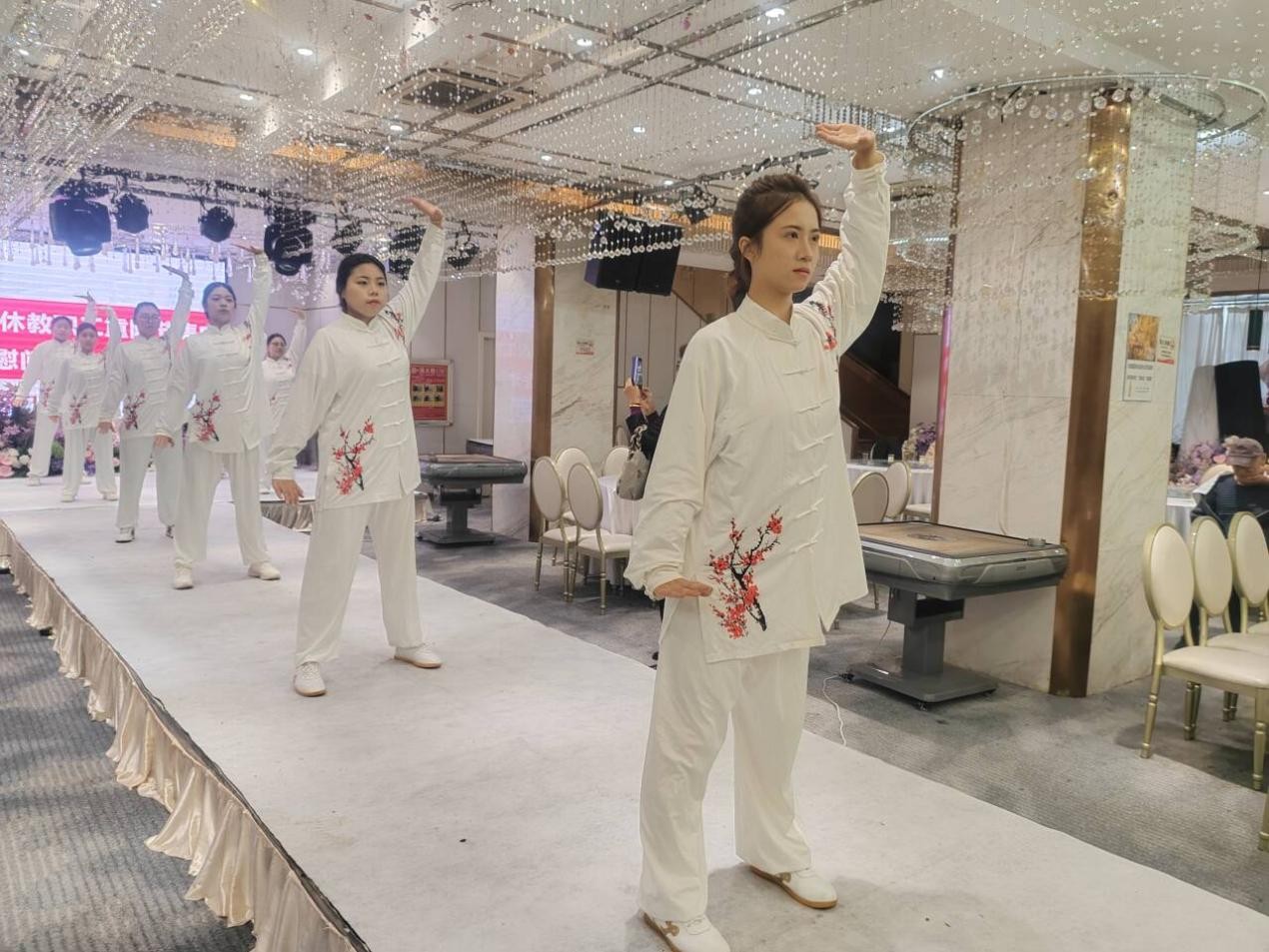 活动在悠扬的音乐中拉开序幕,学院的志愿者首先为老教师们表演了传统养生功法——八段锦。他们动作流畅、刚柔并济,不仅展示了八段锦的独特魅力,也传递了健康养生的理念,更是招来老教师们现场跟练,赢得了在场老教师的阵阵掌声和好评。