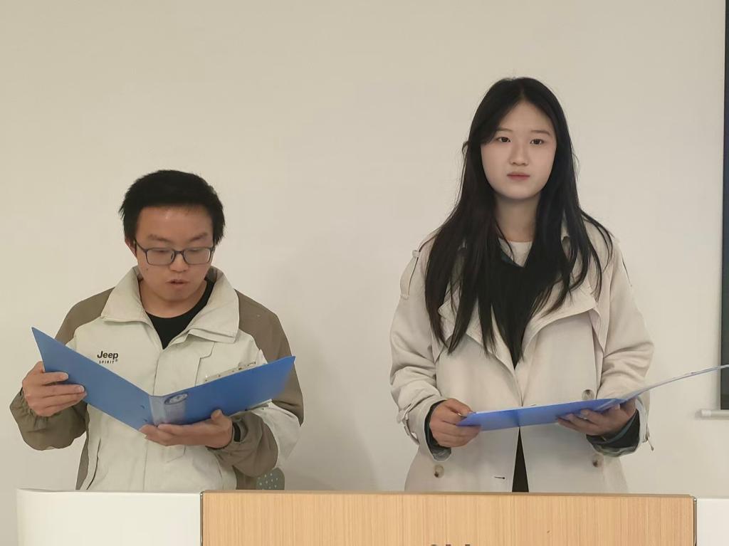 图一 学院教师党支部书记段有发和学生杨佳英进行宣讲