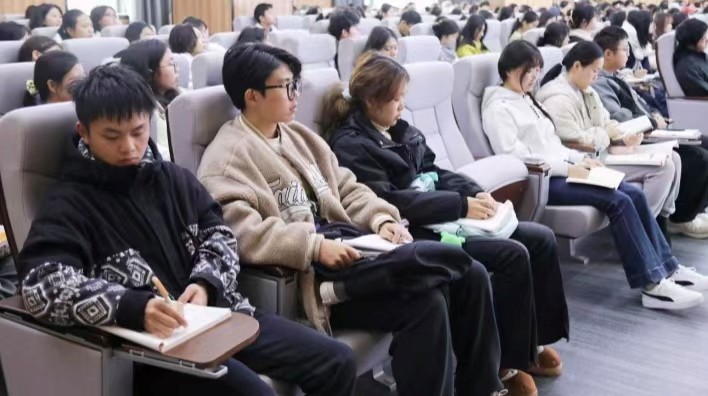 课程尾声,张学桐激励全体师生持续自我提升,积极参与各类专业赛事,以赛促学锤炼过硬本领;倡导大家广泛涉猎书籍、主动拥抱科技前沿,不断拓宽知识视野、积累实践经验,为未来职业发展筑牢根基。整场党课内容兼具理论深度与实践温度,既高屋建瓴又贴合实际,让在场师生深受启发、倍感振奋。