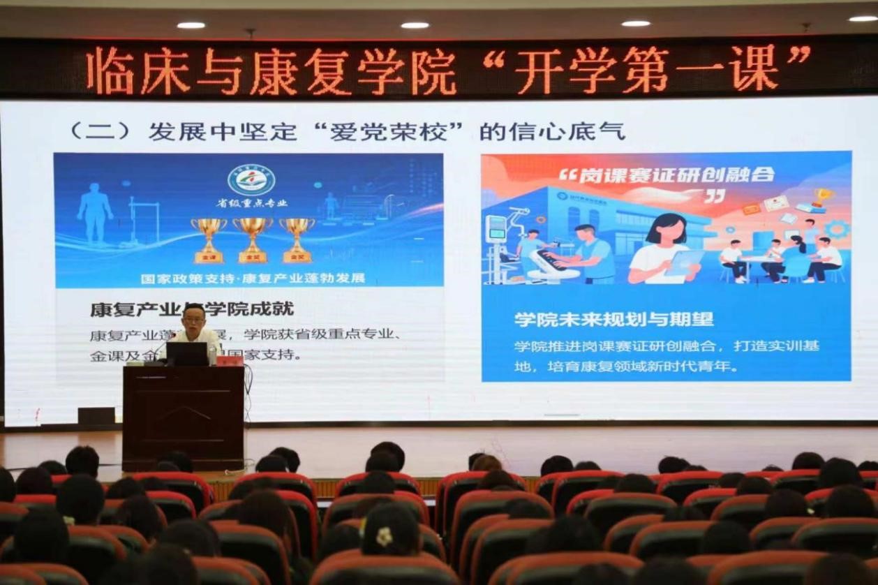 为引导2025级新生尽快适应大学生活,以昂扬向上的精神风貌开启人生新篇章,2025年9月10日,临床与康复学院组织开展了“开学第一课”,由临床与康复学院党委委员、副院长秦皓主讲。