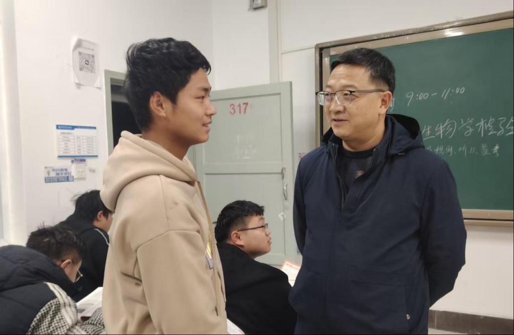 检查过程中,张学桐书记走进自习课堂,与同学们亲切交流并作现场勉励。他强调,新学期是新起点,希望同学们树立远大目标,把重心放在学习上,夯实专业知识,坚持锻炼身体、增强体质;要主动与国际接轨,重视英语学习,以身边真实案例为激励,在专业领域深耕笃行。同学们纷纷表示,一定会牢牢记住书记的叮嘱,尽快收心进入学习状态,以更自觉、更自律的态度上好晚自习、抓好日常学习,认真准备四六级和考研,积极参加实训实践,不断提升自己。