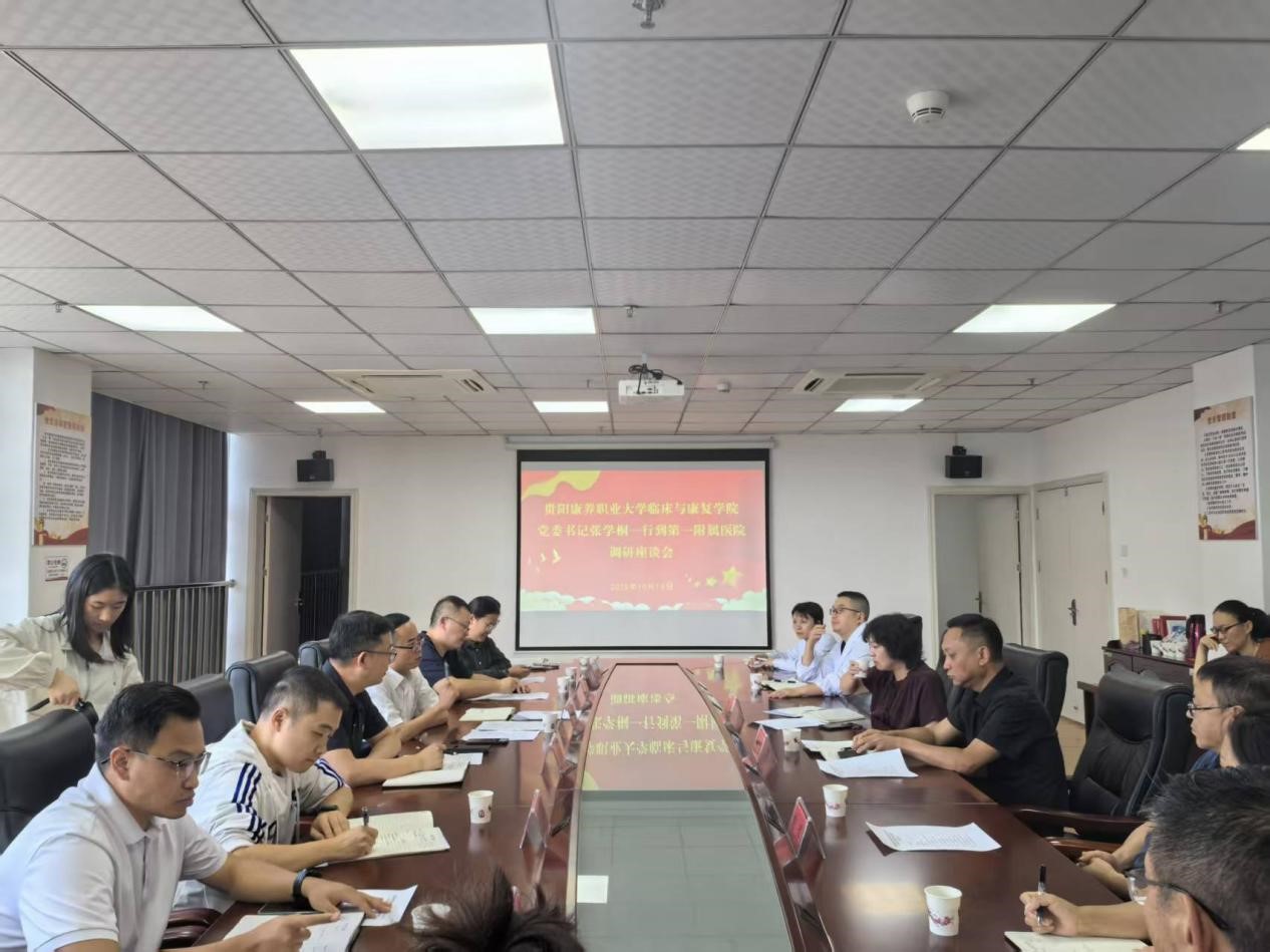 2025年10月13日,学院党委书记张学桐、副院长秦皓带领学院全体科级干部、教研室主任,赴学校第一附属医院开展交流座谈。第一附属医院党委书记谢本军、副院长刘辉、陈琳,以及医院党办、医务科、科教科、护理部、康复医学科等部门负责人参加会议。会议由第一附属医院党委书记谢本军主持。